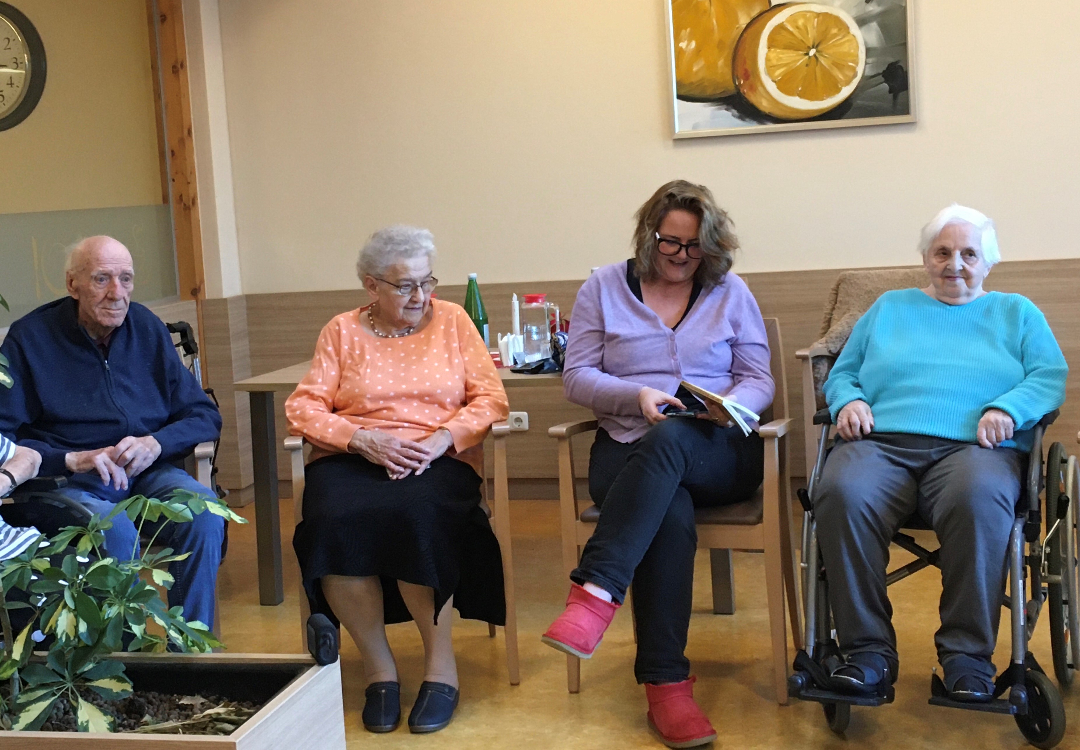 Die Angehörige Bernadette Petschmann hat kürzlich, zum wiederholten Male, eine Lesung für die Bewohner:innen des SeneCura Sozialzentrums Wildon abgehalten. Dieses Mal gab es wunderbare Geschichten aus dem Buch „Als die Kaffeemühle streikte“ von Ulrike Strätling. Sie hat die Geschichten mit Musik begleitet und das animierte ihr Publikum natürlich auch zum Tanzen. Eine etwas „andere“ Lesung mit sehr viel Herz und Einfühlungsvermögen. „Wir bedanken uns herzlich bei Frau Petschmann, die diese Lesungen ehrenamtlich bei uns veranstaltet. Man merkt, dass sie Bücher liebt und den Bewohner:innen – und natürlich ihrem Opa – eine Freude bereiten will. Es ist für uns eine sehr schöne Geste, da es auch zeigt, dass sich unsere Angehörigen sehr wohl in unserem Haus fühlen.“, so Hausleitung Karin Näher.