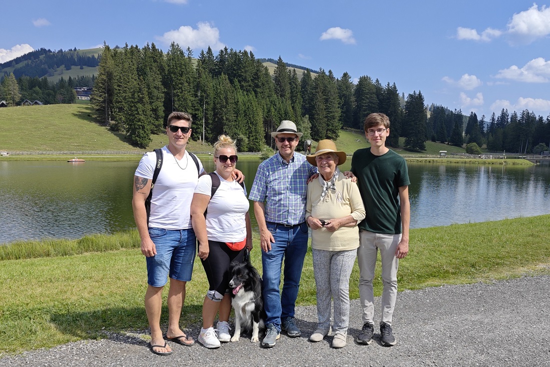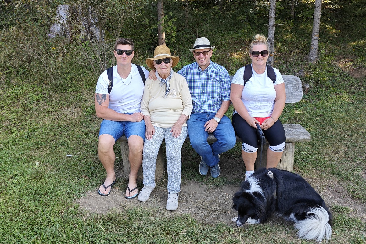 Bewegung ist das Lebenselixier der Bewohnerin Bertra Slana. Bereits in den frühen Morgenstunden dreht sie regelmäßig ihre Runden und tankt so Kraft für den Tag. Schnell kam das Team des SeneCura Sozialzentrums Wildon auf die Idee, die Seniorin auf einen wunderschönen Spaziergang auf der Teichalm zu begleiten. Zusammen mit ihrem Sohn Manfred Slana-Jöbstl, ihrem Enkelsohn Isaak Jöbstl, den beiden Mitarbeitenden Sasa Krajnc Panic und Kosnik Tadej sowie dem Hund Bonnie ging es los zur Teichalm, einem malerischen Ort nur eine Stunde vom Haus entfernt. „Es war einfach wunderschön, die frische Bergluft zu atmen und die herrliche Landschaft zu genießen“, schwärmte Berta Slana nach der Rückkehr. „Besonders der Moorweg hat mich fasziniert, es war so ruhig und friedlich. Ich möchte mich im Namen meiner gesamten Familie ganz herzlich beim SeneCura Team für diese einzigartige Möglichkeit bedanken.“ Der Moorlehrpfad, der barrierefrei zugänglich ist und eine Vielzahl an seltenen Pflanzen und Tieren beheimatet, bot der Ausflugstruppe zahlreiche Eindrücke und Gelegenheiten zum Staunen.