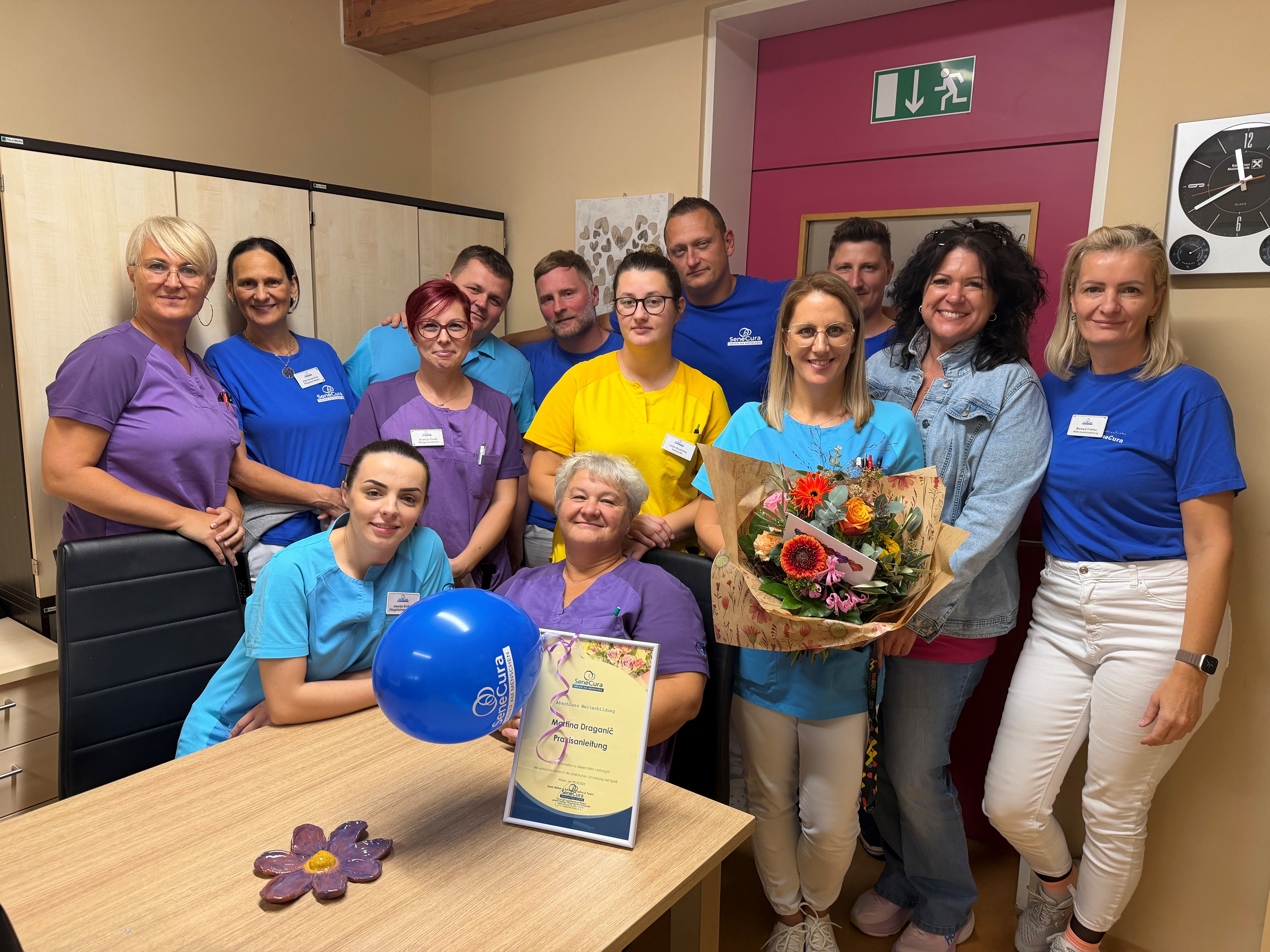 DGKP Martina Draganič, Mitarbeiterin des SeneCura Sozialzentrums Wildon, hat am 14.10.2025 die Fortbildung Praxisanleitung bei Help & Care mit Erfolg abgeschlossen. Zahlreiche Glückwünsche und Gratulationen samt wunderschönen Blumenstrauß kamen vom SeneCura Team Wildon. „Es freut mich sehr, dass sich Martina in diesem wichtigen Bereich spezialisieren wollte und zukünftig unsere Praktikant:innen und Schüler:innen begleiten wird.“, so Karin Näher, Hausleitung des SeneCura Wildon.